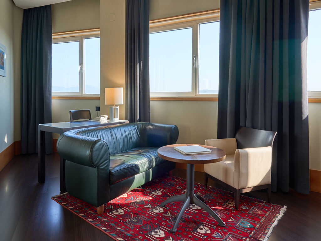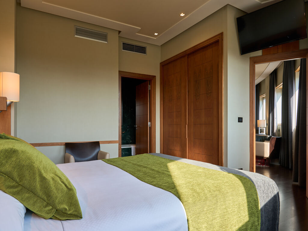 Combina privacidad entre descanso y trabajo gracias a sus dos estancias: un amplio dormitorio con cama King size y sala con zona de estar equipado con escritorio de trabajo.